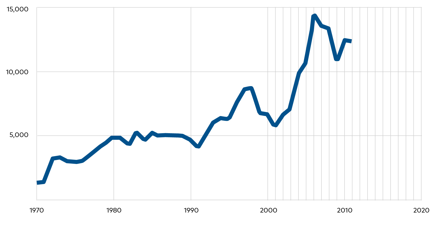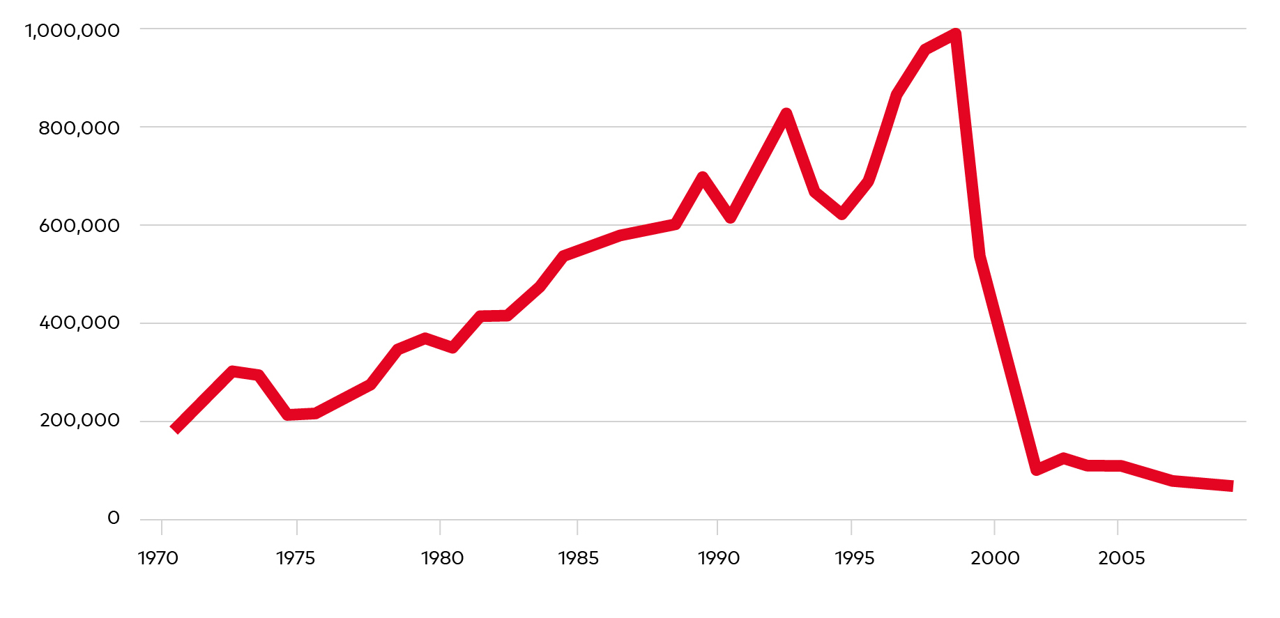 During the decades following the Second World War, traffic over the Kvarken Strait increased substantially. Between 1960 and 1965, passenger numbers grew from around 30,000 to 80,000 per year (Kvarken Council n.d.). As shown in figure 3, passenger numbers doubled from around 200,000 to 400,000 from the early 1970s to the early 1980s, and continued to increase significantly during the 1980s and particularly during the 1990s, reaching a peak of around one million annual passengers in 1998. The sharp increases in passenger numbers during the 1980s and 1990s has largely been attributed to tax-free sales aboard the ferry (Kvarken Shortcut 2012).