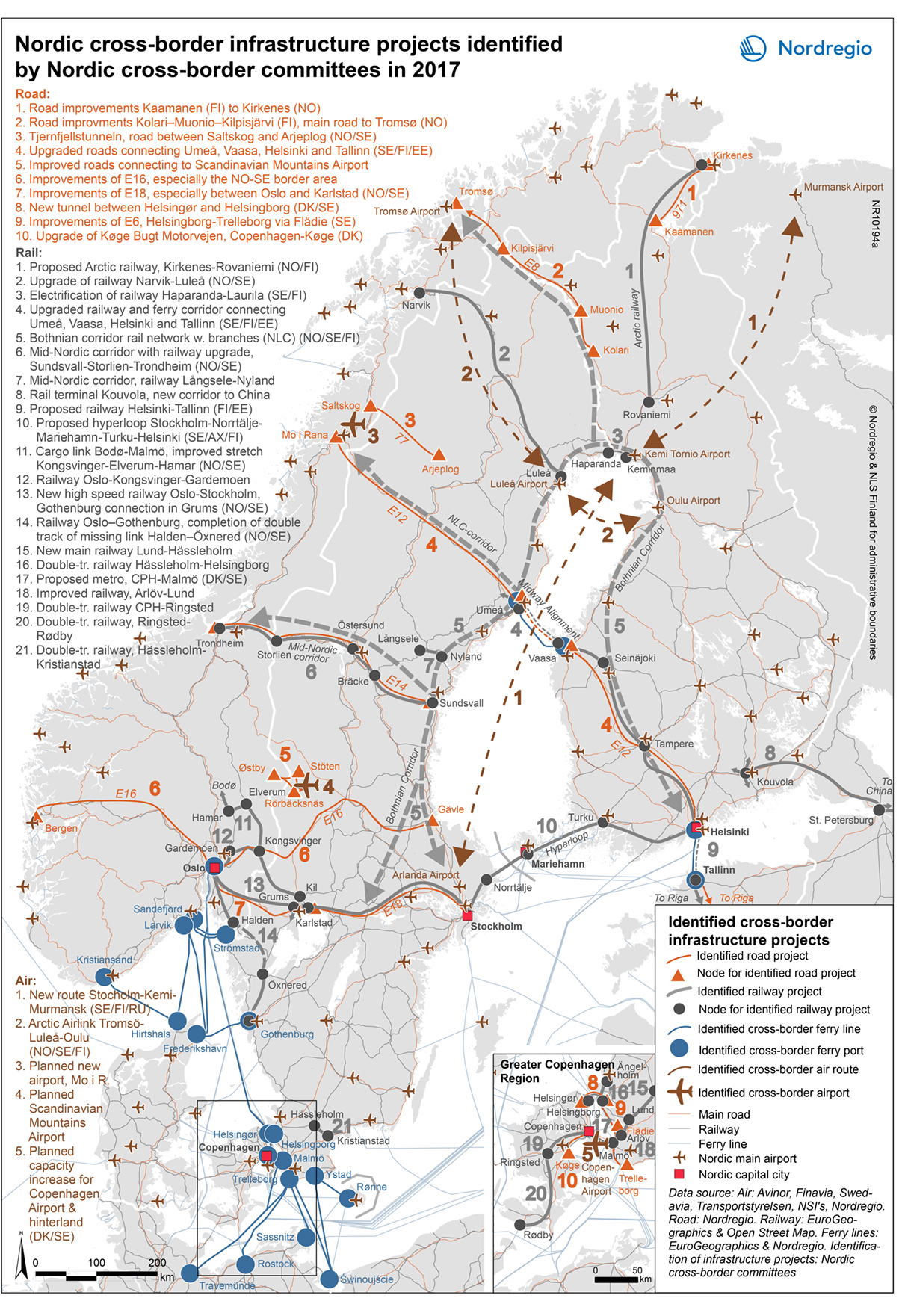 Figure 10. Nordic cross-border infrastructure projects (Nordregio 2017a).