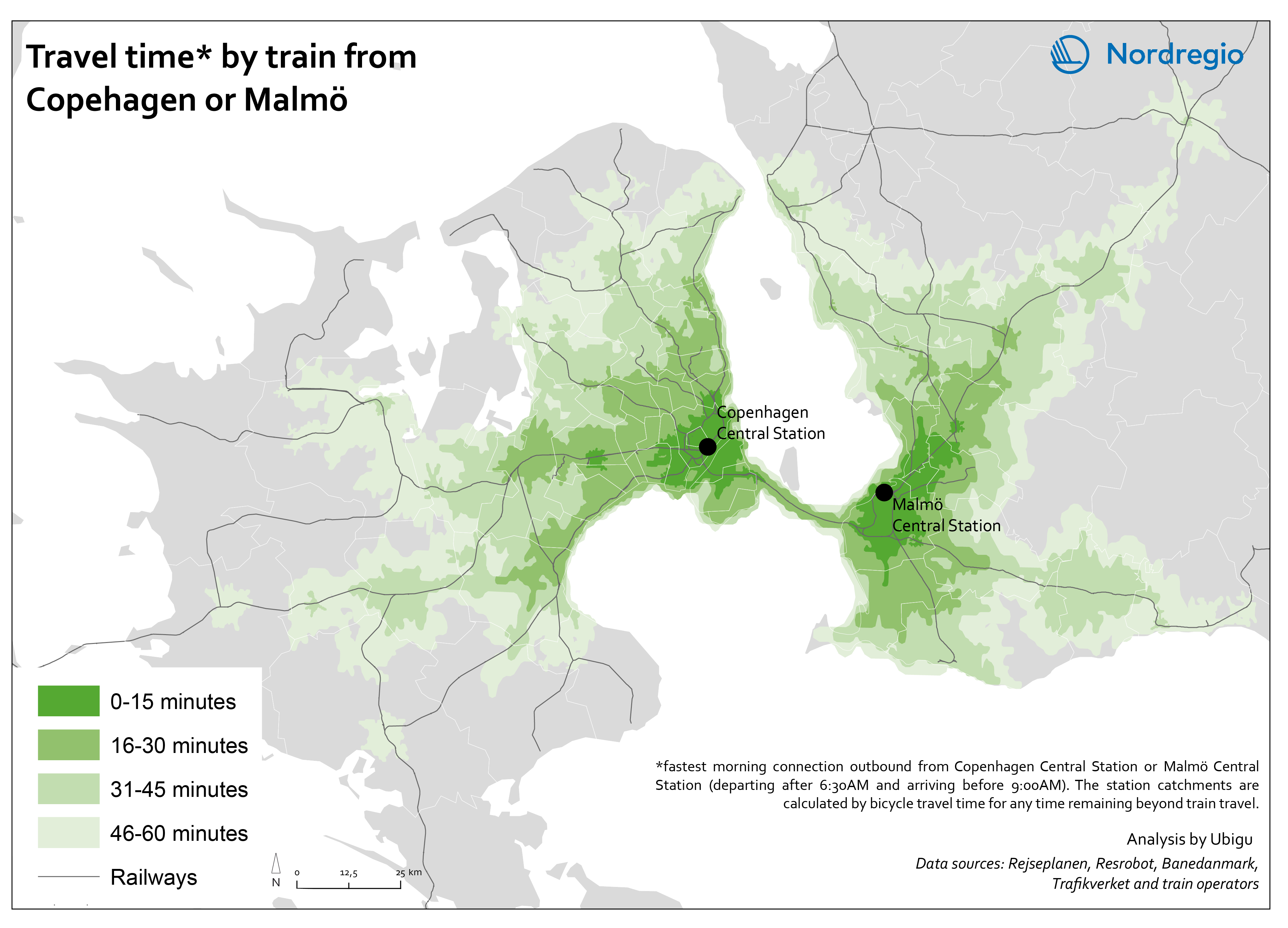 This report is part of the Transport for Regional Integration in Border Regions (TRIBORDER) project. TRIBORDER consists of three elements which all fall under the theme of Sustainable Cities and Urban Development. The purpose of TRIBORDER is to analyse the potential challenges of planning and developing transport connections in three cross-border areas of the Nordic Region. Part One focuses on how small- and medium-sized cities in Värmland and Østfold can benefit from the introduction of a high-speed train connection between Oslo and Stockholm. Part Two focuses on the Kvarken Region and the effects of the Umeå-Vaasa ferry connection on their surrounding regions. And Part Three, which this report is an outcome from, focuses on accessibility to and from small- and medium-sized cities in the cross-border context of the Greater Copenhagen Region.