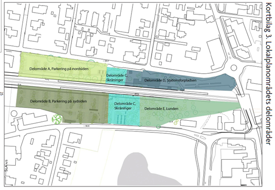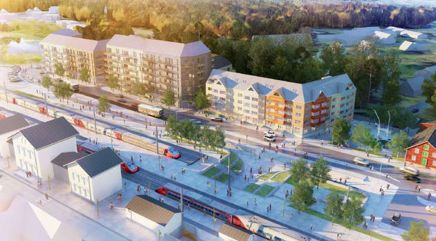 The first phase of the new area consists of a detailed plan, which will give building rights for land under planning consent. This was approved by the municipal council in September 2019. An expected second phase is currently at a standstill, awaiting political guidance in terms of clearer guidelines, objectives, and a vision for the next phase of development. The construction of apartment buildings and new public spaces are part of the first phase of a fresh urban area being created around the train station. The design of the apartment buildings should, according to the description in the plan, relate to the contemporary building tradition in Höör. The public spaces aim to be used as obvious meeting points for the local population – with a centrally located square and close connections to both the bus station and the train station, for all linking public transit options.