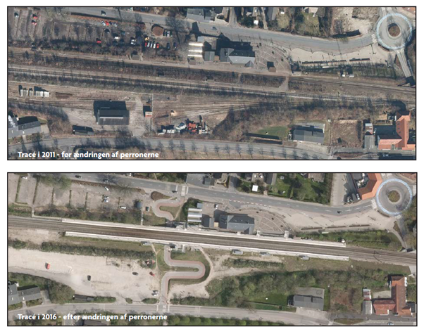 By comparison, the station in Lejre village is a much smaller station. That said, it also accommodates bicycle parking and bus areas for its users. Unlike the surroundings of Hvalsø station, the centre of Lejre town is much smaller. There are no plans to expand the station area significantly at present, with a recent development which sees the car parking expansion for commuters included in local development plans having been approved in late 2019 (Figure 9). For the small station, this is part of an integrated municipal approach to develop the surrounding area overall, alongside public services. A good example of this is the local library, which moved into the former station building a few years ago, serving its daily commuters and the local community well.