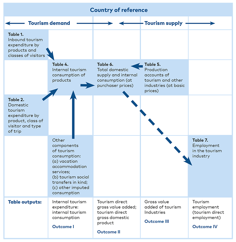 TSAs are a static set of accounts to measure the size or configuration of the tourism sector (i.e. a distinctive set of activities in which visitors participate) in an economy. They are designed to complement the System of National Accounts (SNA), where the term ‘satellite is derived from Kronenberg (2014) and Frent (2016). In other words, a TSA measures the direct contribution of a predefined tourism industry to the overall economy in a manner consistent with the SNA. There are also transport satellite accounts, health satellite accounts and environmental satellite accounts (SCB, 2018; Eurostat, 2020). The term ‘account’ refers to the characteristics of a TSA, including a set of tables that record transactions, sources and uses of resources by institutions (e.g. households) and sectors.