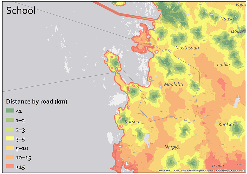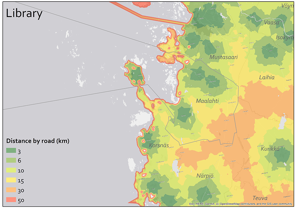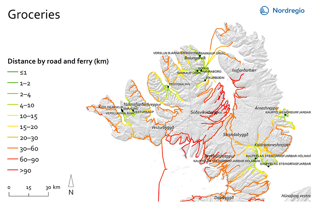 Quantitative data and mapping: Quantitative data was used to develop maps which highlighted the distances to services and general interest across in the Nordic region.