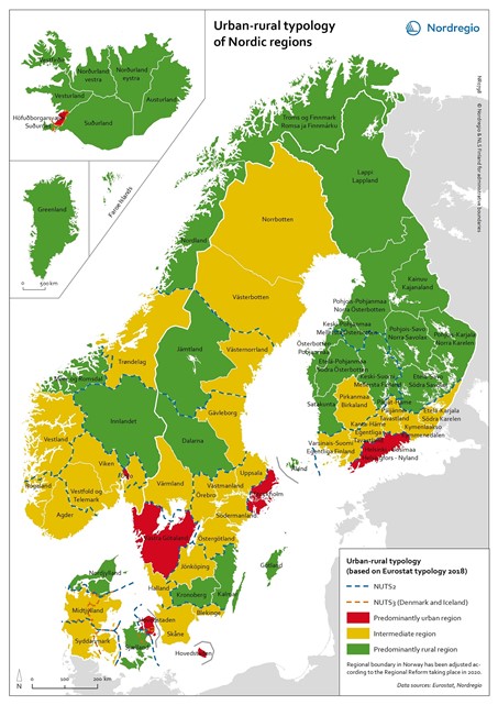 Map 10. Urban-rural typology of Nordic regions 2020.