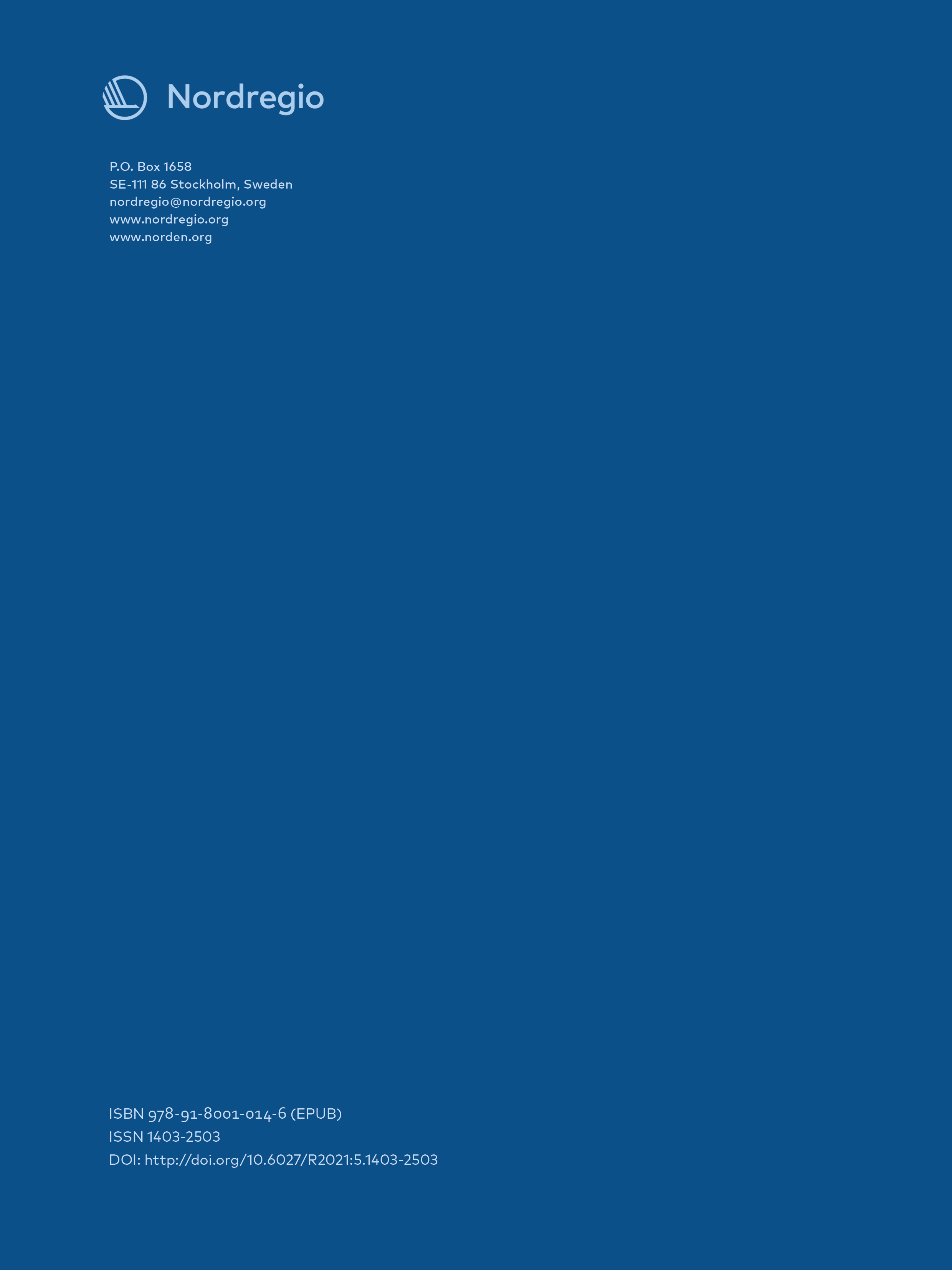 To cite this publication: Teräs, J. et al. (2021). TG2 Innovative and Resilient Regions - Roadshow report. Nordregio Report 2021:5, Stockholm: Nordregio.