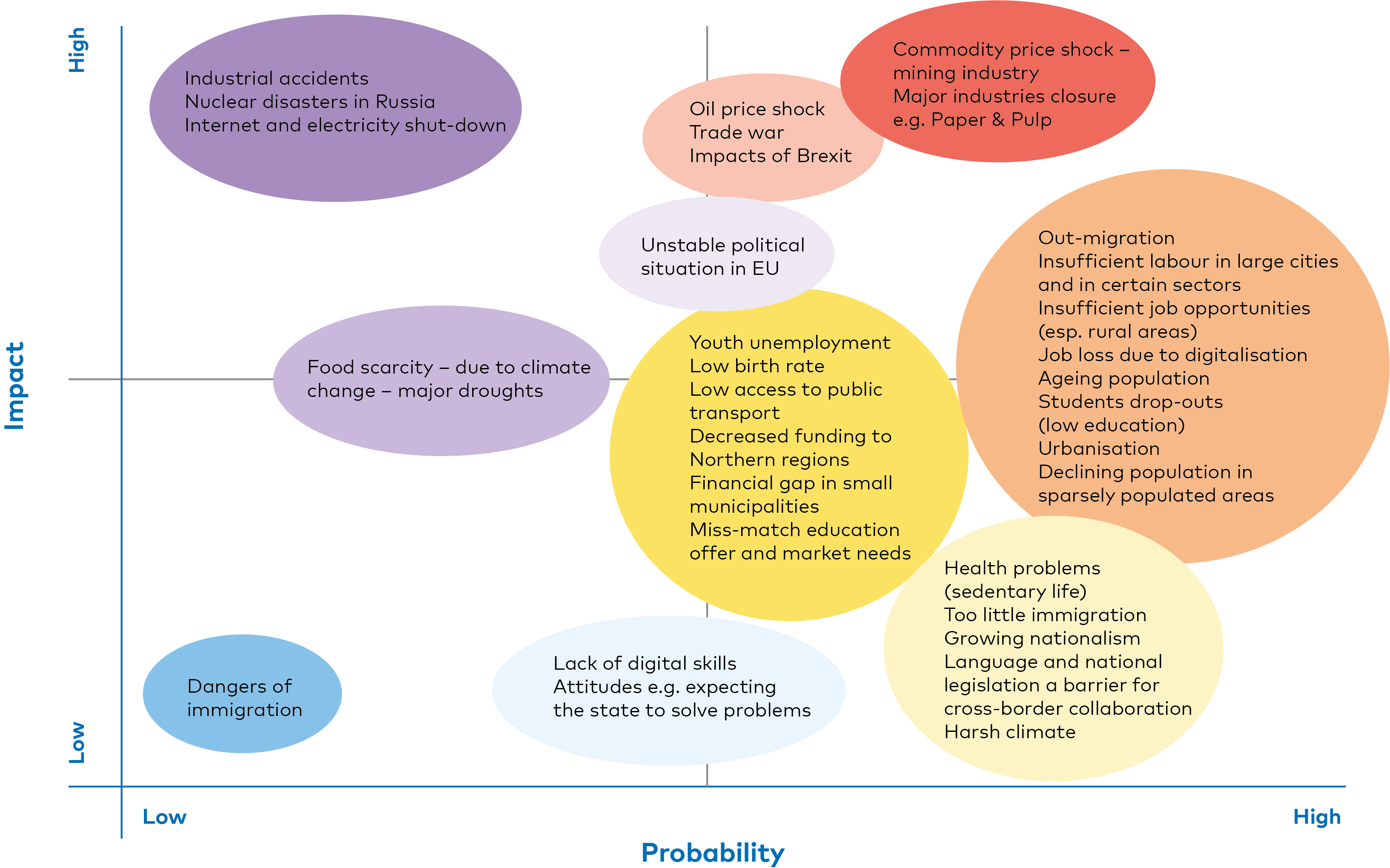 Figure: Risk landscape in the Bothnian Arc. Results from the workshop in Tornio.